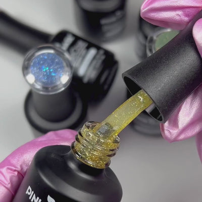 The Reflective Jelly Color Base Coats combine base, color, and effect in one innovative product. Their translucent jelly finish subtly enhances the natural nail, while reflective particles react to light, creating soft, luminous sparkles.
